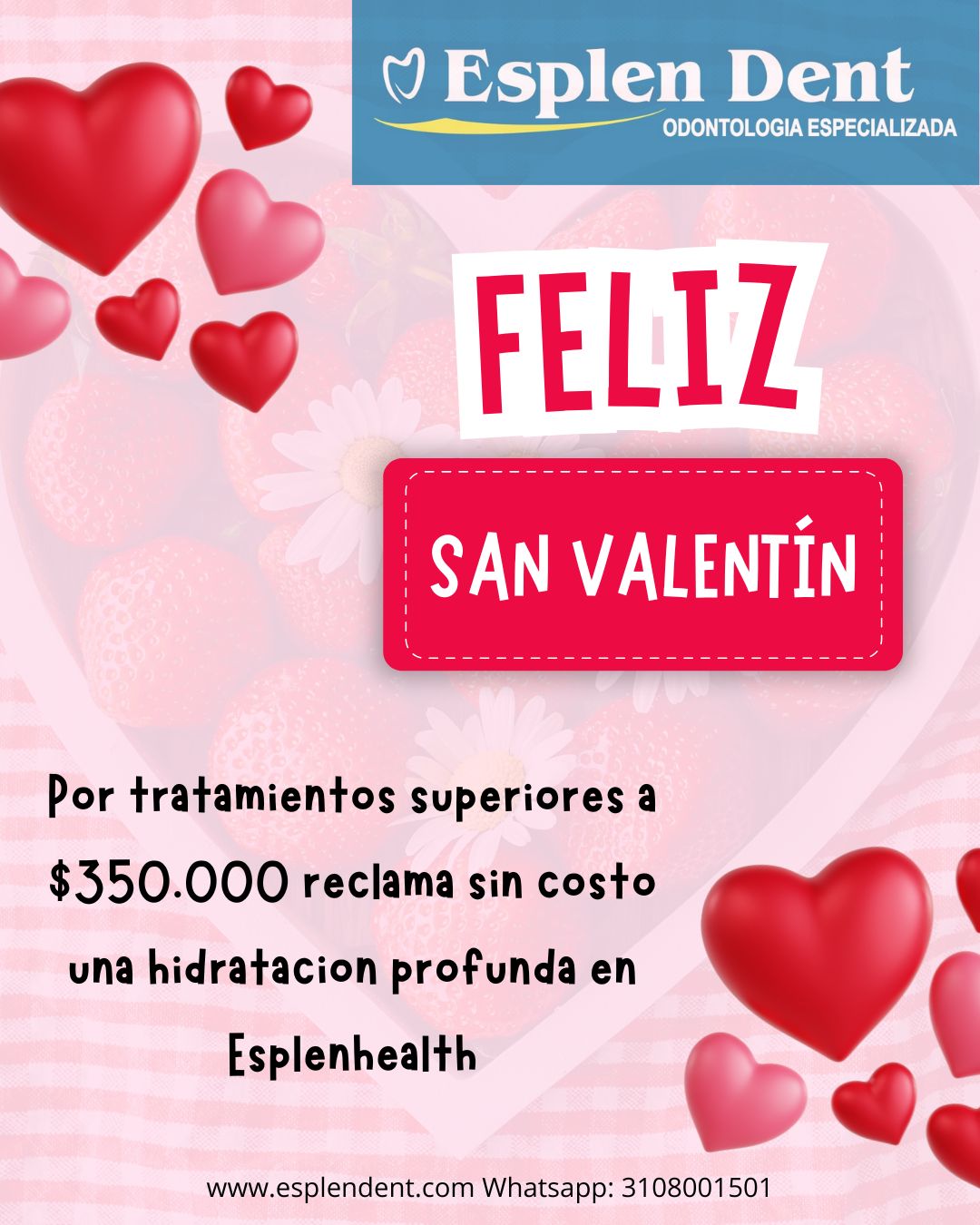 En este mes de Febrero aprovecha nuestra promoción. Por tratamientos superiores a $350.000 en Odontologia reclama sin costo una hidratacion profunda en esplenhealth.